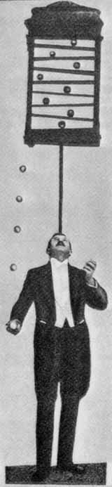 Table, chair and newspaper juggleIn his early twenties he met Franz Pospischil, who became his agent. Together they chose the stage name "Kara". Pospischil was able to arrange booking in the major cities of Europe, and in 1892 a tour of the USA. It was in America that Kara first performed in evening dress, and began juggling everyday objects - coins, umbrellas, crockery, cutlery, napkins, chairs, tables, newspapers, monocles, hats, eggs, candles, cigars... While Kara was not the only originator of the Gentleman Juggling style, he was certainly its greatest exponent.