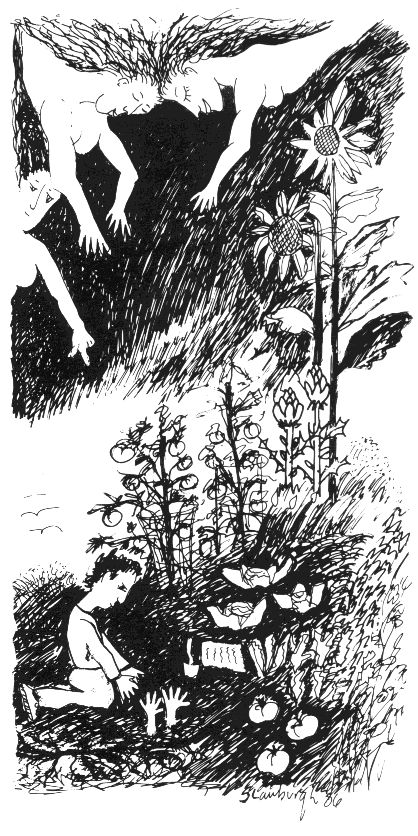 His hands are covered with the wet, black earth. Almost everything is lost. The beans are scattered across the ground, the pods bursting open all around him. The artichokes slip easily from the wet soil, bruised and dripping. He holds the soggy green hearts in his hands and cries. Earlier he had found another note on the mirror. His naked body had shivered as he read it. THERE IS FAR TOO MUCH DEATH HERE NOW. PLEASE LET LIFE PULSE FROM YOUR HANDS AGAIN. YOUR WIFE.