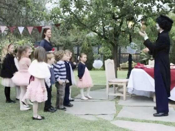 At 30:03, Stephen Sheehan plays a clown performing for a children's