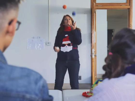 juggles 3 balls,