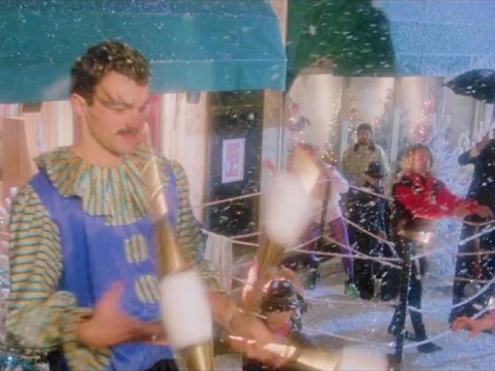 we see someone juggling 3 balls, and then a man and a woman passing