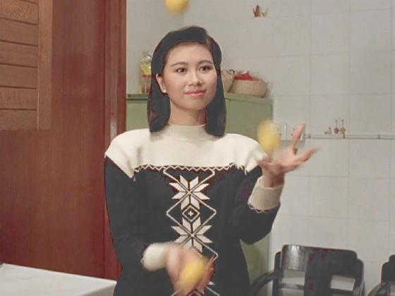 better by juggling 3 lemons, until he throws an onion at her, messing