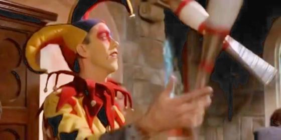 At 40:14, in a Renaissance-themed restaurant, a court jester, played by