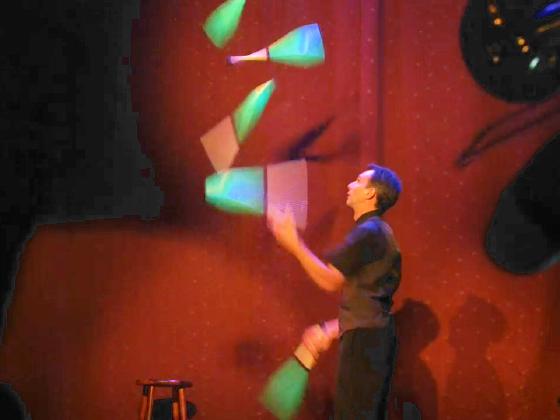 At 22:31, a male performer on stage juggles 5 clubs for 2 seconds. The entire movie may be seen here, dubbed in Russian.