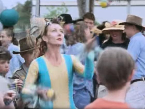 At 52:24, the kids are at the Rainbow Valley Wood-Chip Festival, and