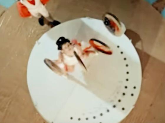 does a handstand, and then