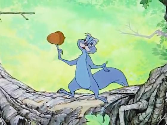 At 1:44:55, Merlin, transformed into a squirrel, does a brief one acorn