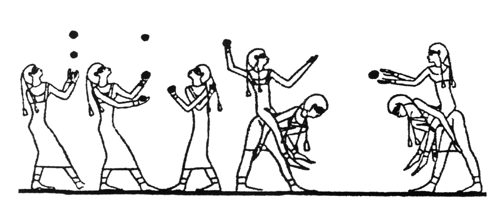 EARLIEST DEPICTION OF JUGGLING known shows skillful Egyptian women on the 15th Beni Hassan tomb of an unknown prince from the Middle Kingdom period of about 1994 to 1781 B.C.